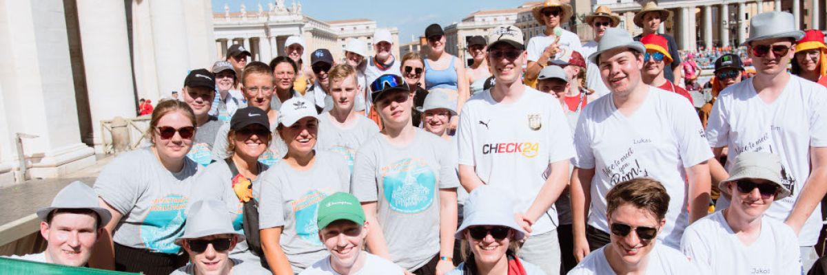 Paderborn / Rom (pdp). „Im Fernsehen“, sagt Sarah Eckhart aus Balve, „kommt diese Herzlichkeit des Papsts gar nicht so rüber. Er nimmt sich Zeit, lächelt allen zu, lässt Kinder auf seinem Papamobil mitfahren.“ Die 17-Jährige ist eine von 50.000 Ministrantinnen und Ministranten bei der Papstaudienz der Internationalen Ministrantenwallfahrt am Dienstag auf dem Petersplatz. Auch 600 Pilgerinnen und Pilger aus dem Erzbistum Paderborn sind dabei.