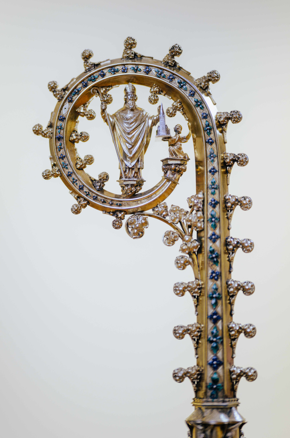 Der Paderborner Bischof Dr. Wilhelm Schneider (amt. 1900-1909) hat einen besonderen Bischofsstab in Auftrag gegeben und genutzt. Dieser hat einen dreiteiligen Schaft, die Abschnitte sind mit unterschiedlichen Ornamenten verziert. Unter Baldachinen im Schaft stehen vollplastische Figuren der Heiligen Liborius, Augustinus und Wilhelm. Der Stab mündet in eine Krümme, in der der erste Bischof von Paderborn dargestellt ist: Auf einer Konsole kniet ein Engel, der dem heiligen Bischof Hathumar das Modell des Paderborner Domes präsentiert.